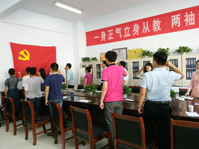 最后,全体起立,面向党旗进行宣誓。公司党总支书记吴建彪同志对五名同学表示了祝贺,并提出了希望和要求。希望大家可以在自己的学习和工作岗位上发挥党员的先锋模范作用,完成自己的各项任务,为全院员工树立榜样。