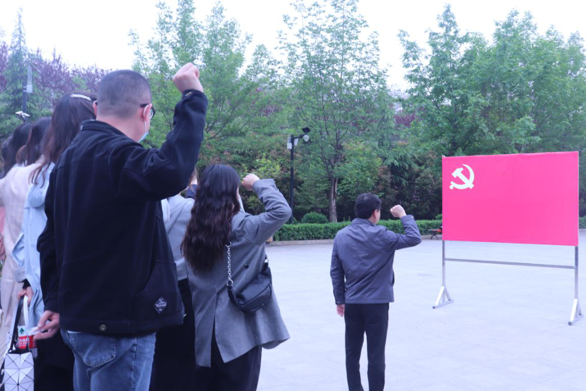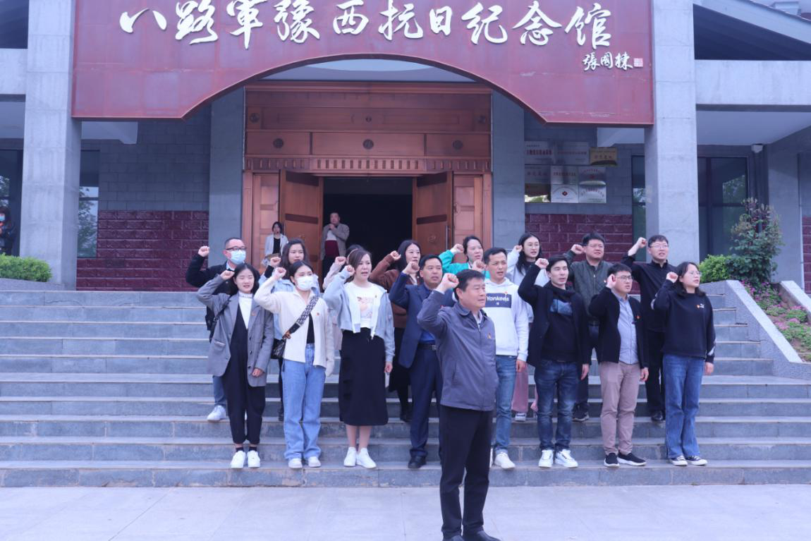 大家首先来到八路军豫西抗日纪念馆。参观前,在公司党委书记熊俊杰的带领下,全体党员举起右手、握紧拳头,面对鲜红的党旗庄严宣誓,在党旗下接受洗礼,坚定入党初心,牢记共产党员的政治责任和历史使命。