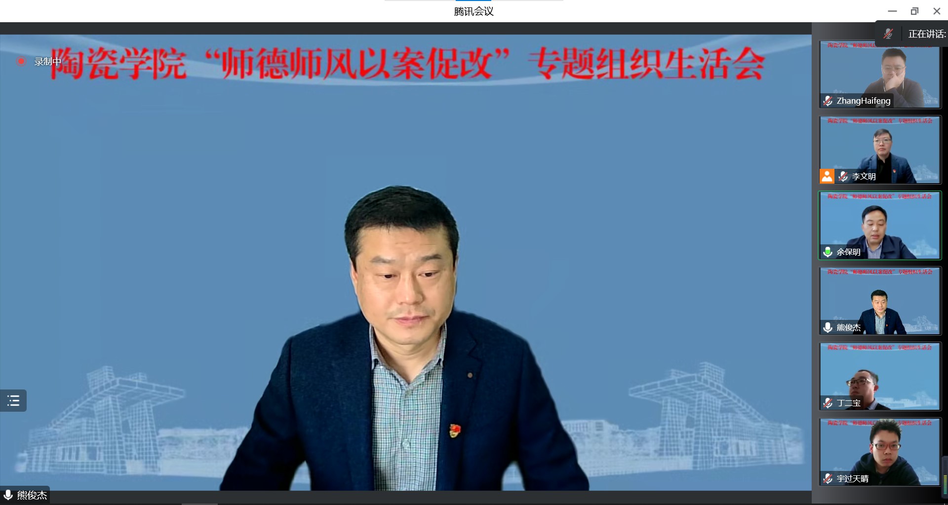 为贯彻落实习近平总书记关于师德师风建设的重要指示精神,推进教师十项行为准则的有效实施,打造一支思想政治素质过硬,职业道德水平高的教师队伍。根据公司工作安排,11月24日下午,tyc122ccvip以线上会议形式召开“师德师风以案促改”专题组织生活会。校工会副主席王福强到会指导。会议由公司党委书记熊俊杰主持,全体教职工参加会议。