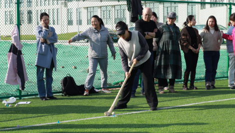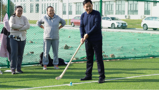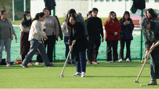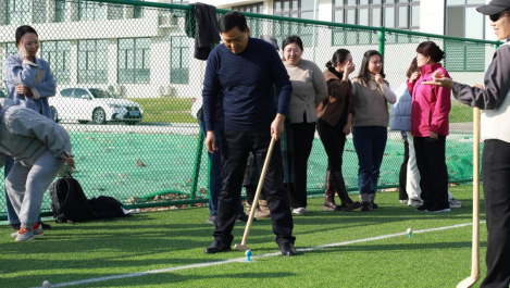 本次活动以“‘捶’响非遗,‘丸’转运动”为主题,分为捶丸体验和捶丸比赛两个环节,邀请专业人士讲解介绍捶丸运动的规则和击球技巧,老师们在专业人士指导下跃跃欲试,有序参与,依次体验。