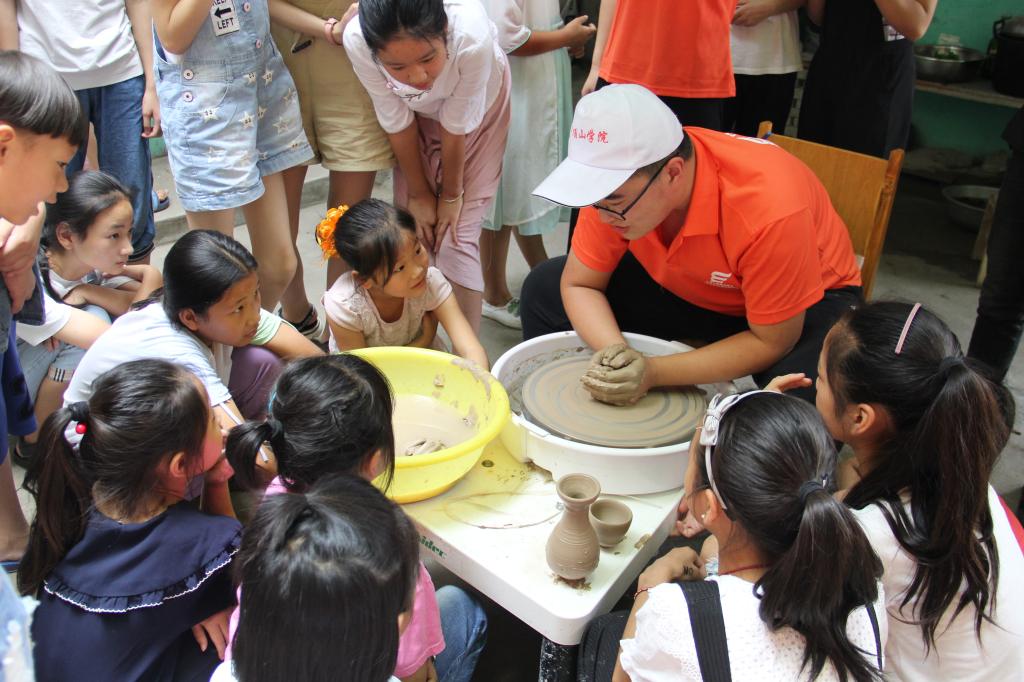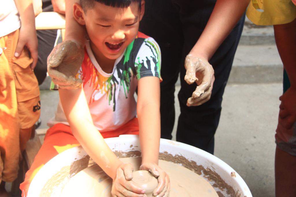 定中心、拇指缓慢向外平拉……拉坯的每一步让孩子感到好奇和新鲜,相信今后陶瓷的身影会永远的留在他们的心间。