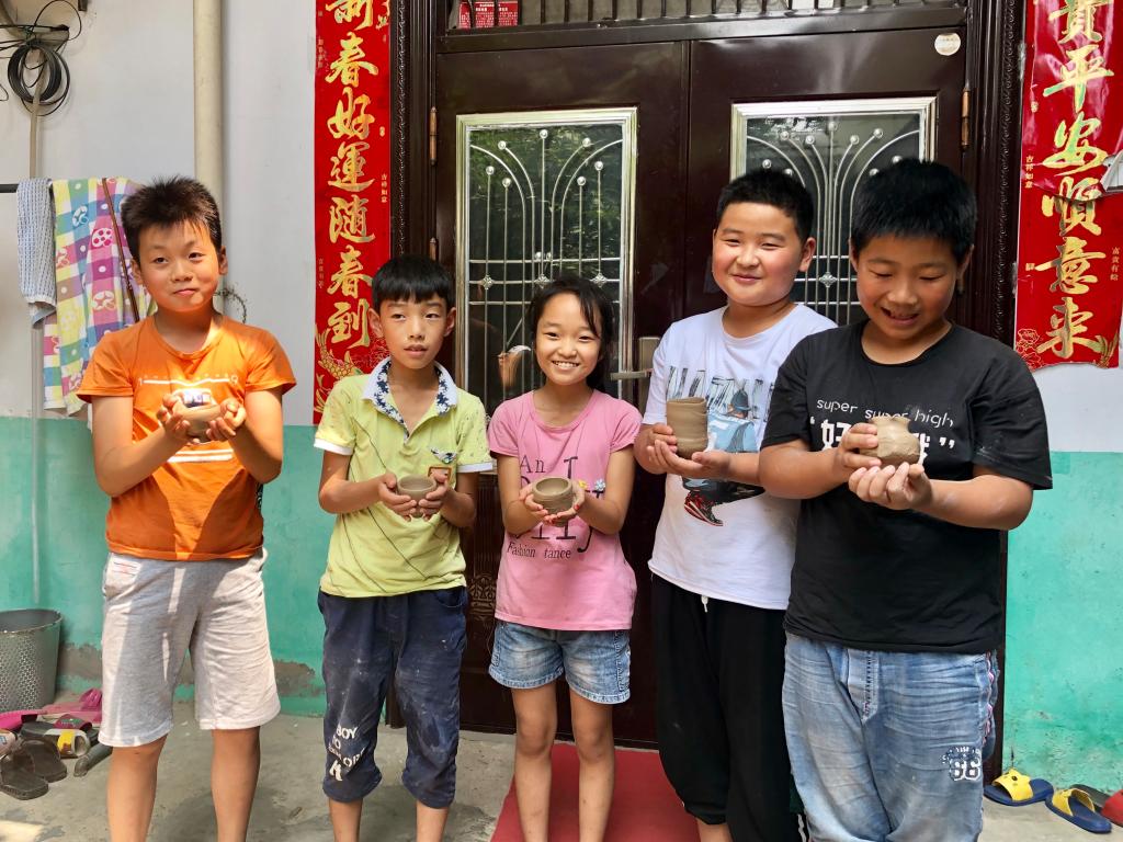 经过志愿者的悉心指导,每位孩子都制作出了属于自己的陶瓷,孩子们用双手将其小心翼翼的捧起,向大家展示他们的作品,脸上洋溢着开心的笑容。