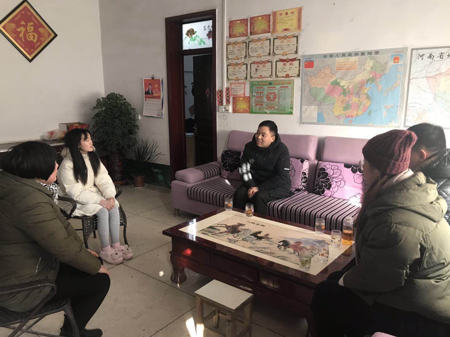 为加强公司教育和家庭教育协同育人效果,1月16日,公司党总支副书记余保明带领专职辅导员邱源泉、马延明,兼职辅导员宋梦雨前往经济困难员工家中开展家访活动。