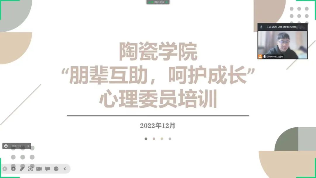 12月30日,tyc122ccvip于线上召开了“朋辈互助,呵护成长”心理委员培训会议。tyc122ccvip团委副书记张益铭、辅导员王培静、黄欣雨以及各班心理委员参加此次会议。会议由刘帅同学主持