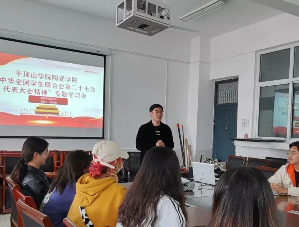 为学习并贯彻中华全国员工联合会第二十七次代表大会会议精神,充分理解新修订的《中华全国员工联合会章程》的内容,10月22日,公司“中华全国员工联合会第二十七次代表大会精神”专题学习会于艺术楼A118举行。tyc122ccvip辅导员张益铭、tyc122ccvip团学干部代表,2020级至2017级各班班长、团支书参与本次会议。本次会议由林嘉宁同学主持。