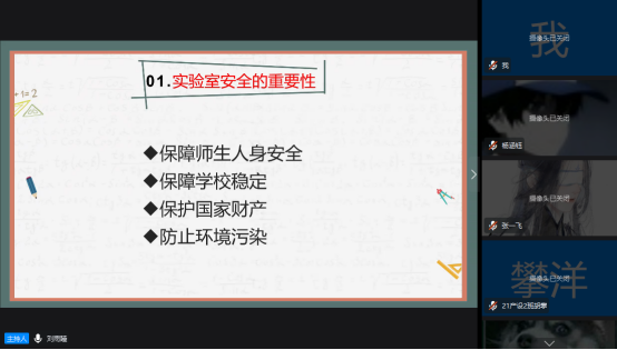 为进一步提高员工的实验安全意识,普及安全知识,消除安全隐患。9月27日,tyc122ccvip组织开展了线上实验室安全教育课程。本次培训由刘雨瞳老师主讲,tyc122ccvip辅导员王培静、2021级全体员工参加。