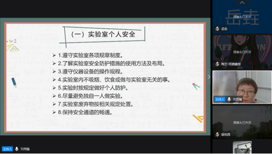 刘雨瞳老师在课上就安全意识、安全知识和安全操作等方面进行了介绍,首先强调了提高实验室安全意识的重要性以及员工必须了解的实验室安全守则、实验的基本操作等内容。