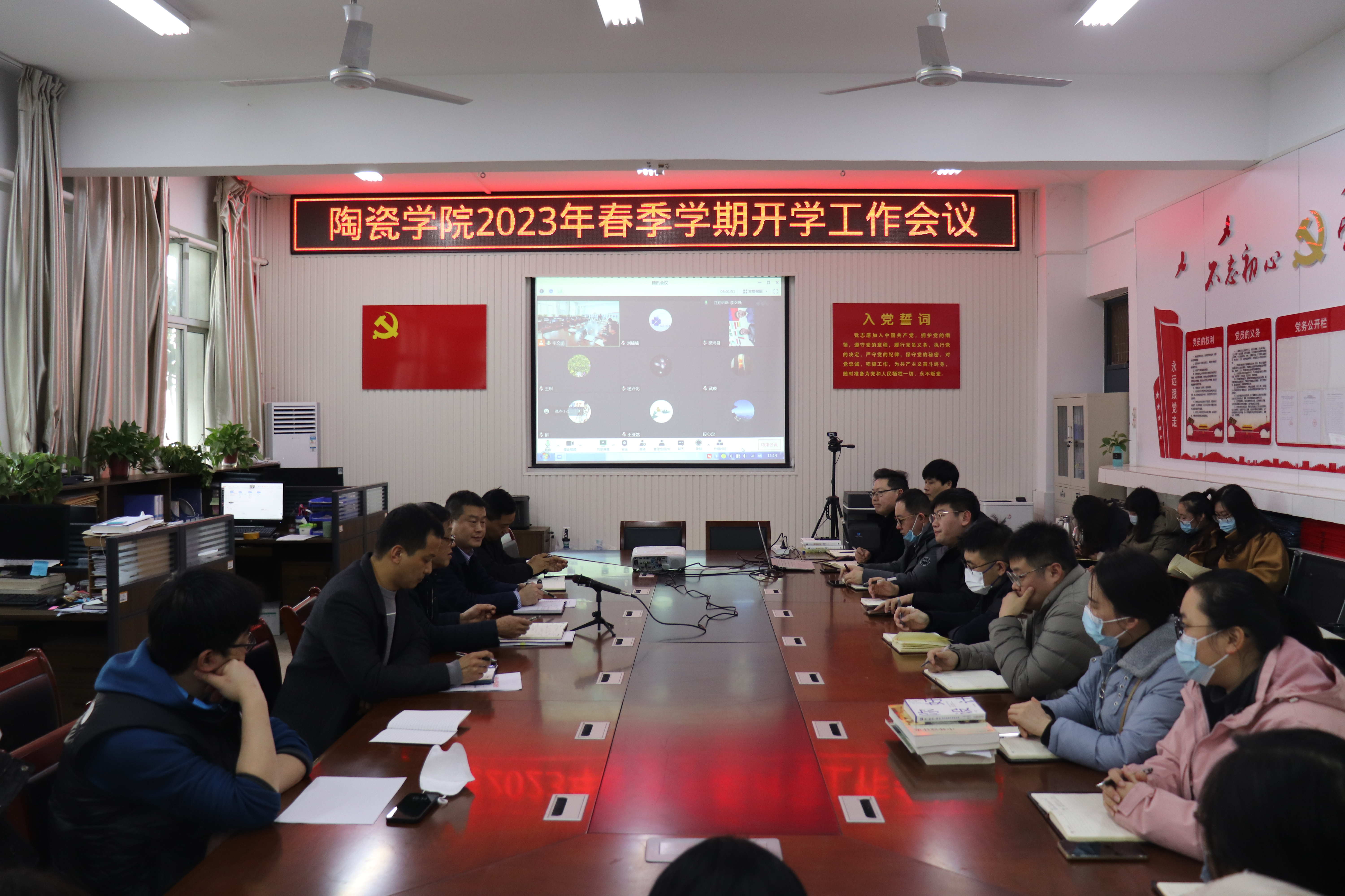 2月17日,公司在艺术楼118会议室召开新学期开学工作会议,经理梅国建、党委副书记余保明、副经理刘光甫和各全体教师参会。会议由党委书记熊俊杰主持。