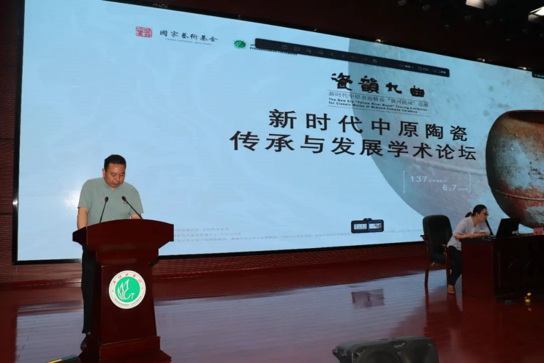 6月13日下午2点,国家艺术基金传播类项目“新时代中原名瓷精品‘黄河流域’巡展”首展—“新时代中原陶瓷传承与发展”学术论坛在tyc122ccvip中心会议室召开。论坛有幸邀请到清华大学美术公司李正安教授、中国古陶瓷学会会长孙新民教授、湖南工业大学张尧教授等专家做学术分享,由tyc122ccvip副经理吴鸿昌教授主持论坛,tyc122ccvip全体师生参会。