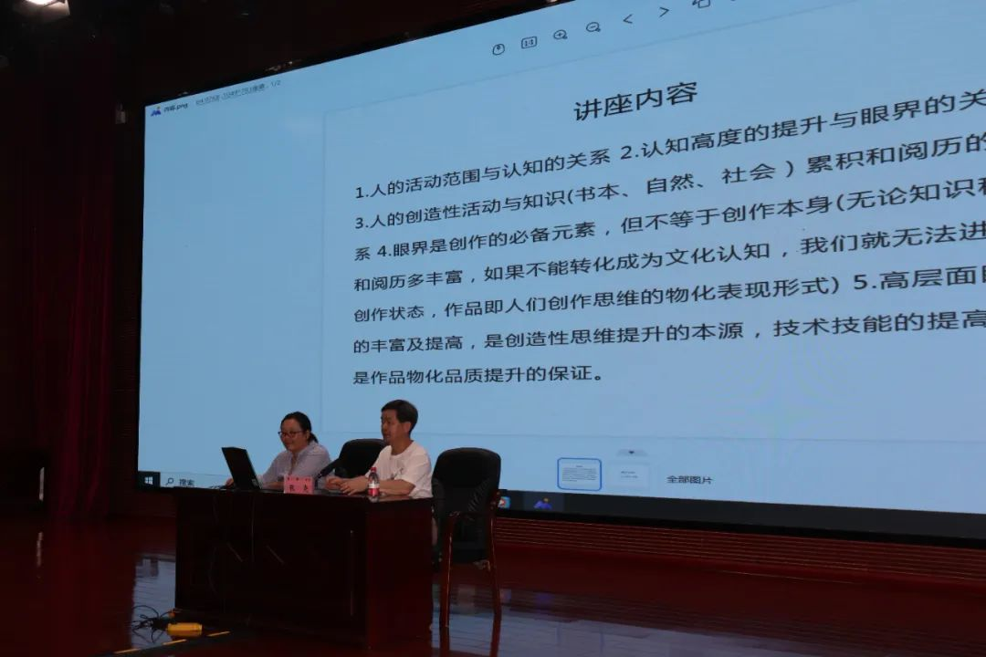 最后一位分享专家张尧教授以“眼界与创新”为论点,讲述了关于艺术创作中开拓眼界的重要性,向师生分享了他不同时期的创作作品及成长轨迹。张尧教授表示,他喜欢用陶瓷这一古老而独特,具有东方代表性的艺术载体来诠释自己的东方情怀。他的作品创作始终根植最本源的中华传统文化,融入自己独到的理解与创新,使物态空间与精神空间相得益彰,辉映生彩。最后,在tyc122ccvip广大师生的热烈掌声中本次论坛会圆满结束。本次论坛的召开,一方面,让tyc122ccvip全体员工对陶瓷艺术有了进一步了解和认识,不仅开阔了学术视野,丰富了艺术见闻,也为后期师生从事陶瓷艺术研究和创作打下了理论基础。一方面,经过几位专家的专业剖析和解读,让中原陶瓷对自身的定位和发展的方向更加清晰的同时,让更多人了解中原文化,积极参与到中原陶瓷崛起的步伐中来,为中原陶瓷能在当今世界陶瓷之林中发光发热而努力。