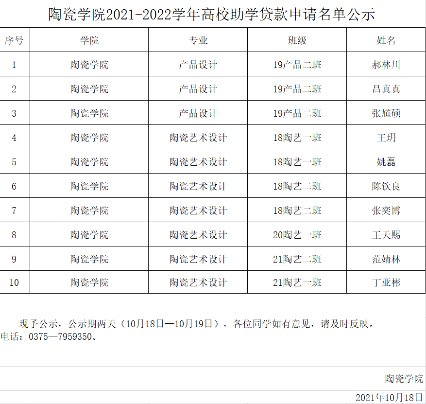 2021-2022学年高校助学贷款申请名单公示