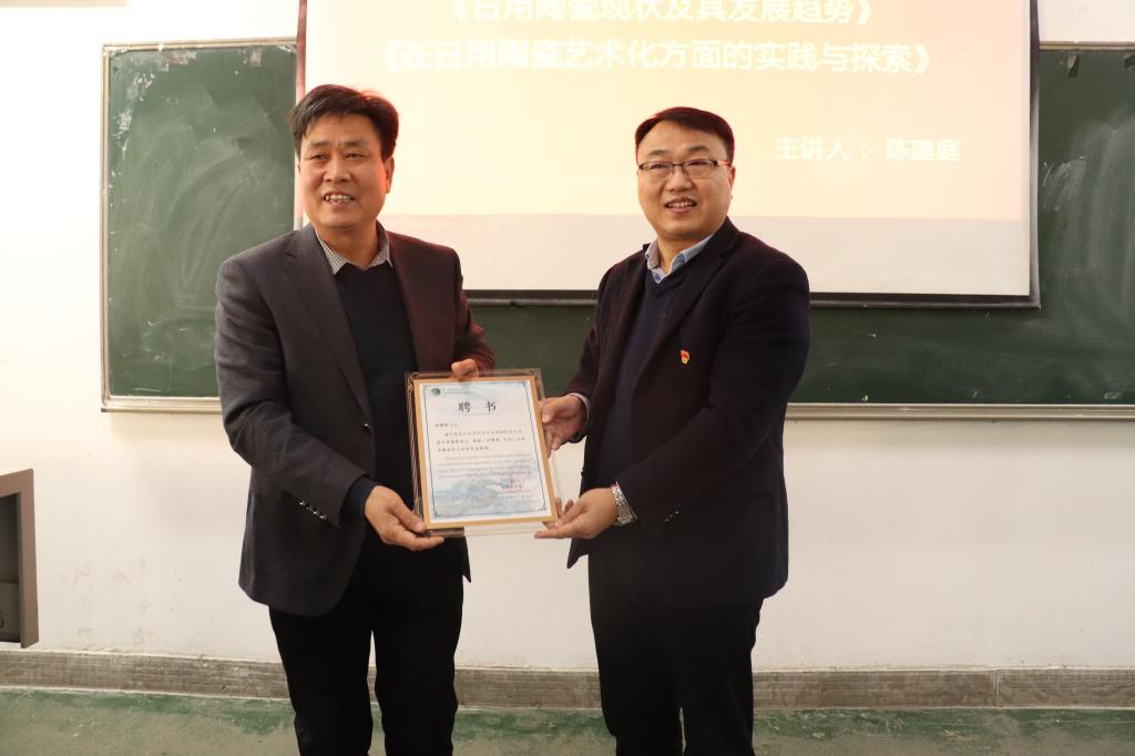12月5日下午,河南白玉陶瓷有限公司董事长陈建庭应邀来到公司,在4号教学楼306教室作了一场题为《日用陶瓷现状及其发展趋势及在日用瓷艺术化方面的实践与探索》为主题的学术讲座,讲座由tyc122ccvip副经理吴鸿昌主持。