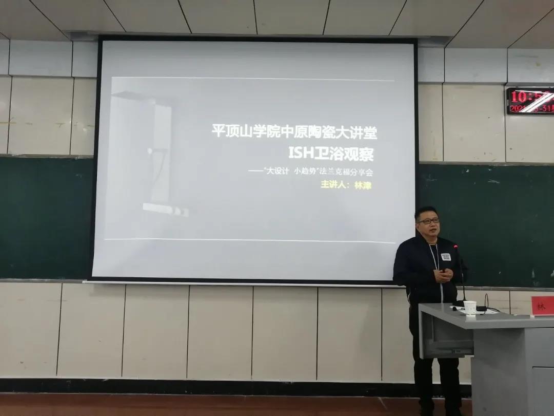 3月31日上午,tyc122ccvip于2号教学楼206教室开展了《创意、创新与创值差异》的专题讲座,中国陶瓷设计师、厦门匠仕工业设计有限公司创值长、第一个代表中国卫浴设计师站在iF颁奖会上的发言人林津应邀来到公司tyc122ccvip"中原陶瓷大讲堂”担任主讲,tyc122ccvip副经理刘光甫主持,tyc122ccvip教师代表和全体员工积极参加讲座。