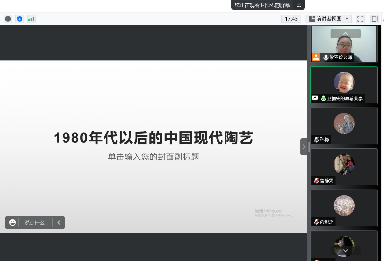 2022年11月11日下午,公司邀请中国美术馆与北京大学联合招收博士后卫恒先博士作题为《1980年代以后的中国现代陶艺》的学术讲座,tyc122ccvip相关负责人、专业教师及员工参加了讲座,讲座由tyc122ccvip教学科研办公室主任梁翠玲老师主持。